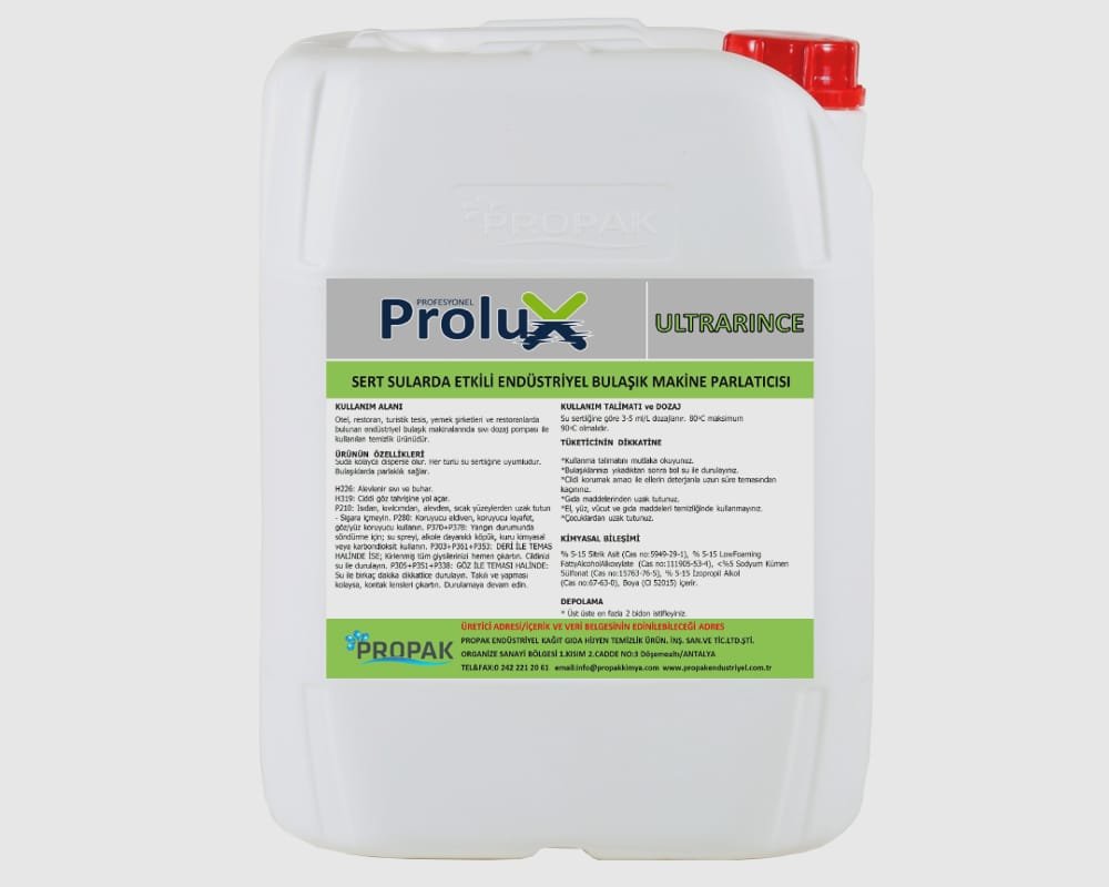 Il est utilisé avec des pompes de dosage dans les lave-vaisselle de type industriel dans les hôtels, les hôpitaux, les restaurants et toutes sortes d’entreprises. Il prévient la formation de taches de calcaire sur la vaisselle et garantit une vaisselle impeccable, brillante et sèche. Il est utilisé avec le détergent pour lave-vaisselle industriel « ULTRAMAT ». Prévient la formation de calcaire dans la machine. Efficace en eau dure.