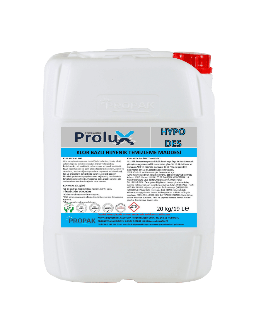 It is a product used in chlorine-based bleaching and cleaning process. It is a highly effective product on all kinds of bacteria, mold, yeast. It is used for cleaning all kinds of surfaces in contact with food.
